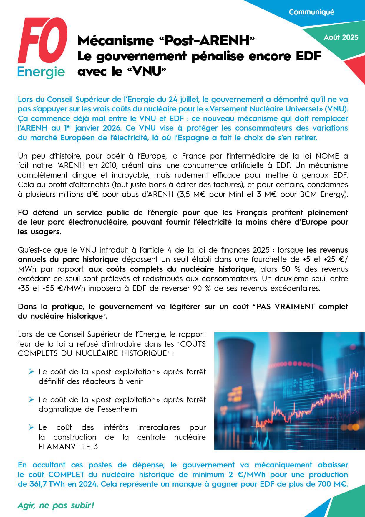2025 08 01 - [Mécanisme «Post-ARENH»] Le gouvernement pénalise encore EDF avec le «VNU»