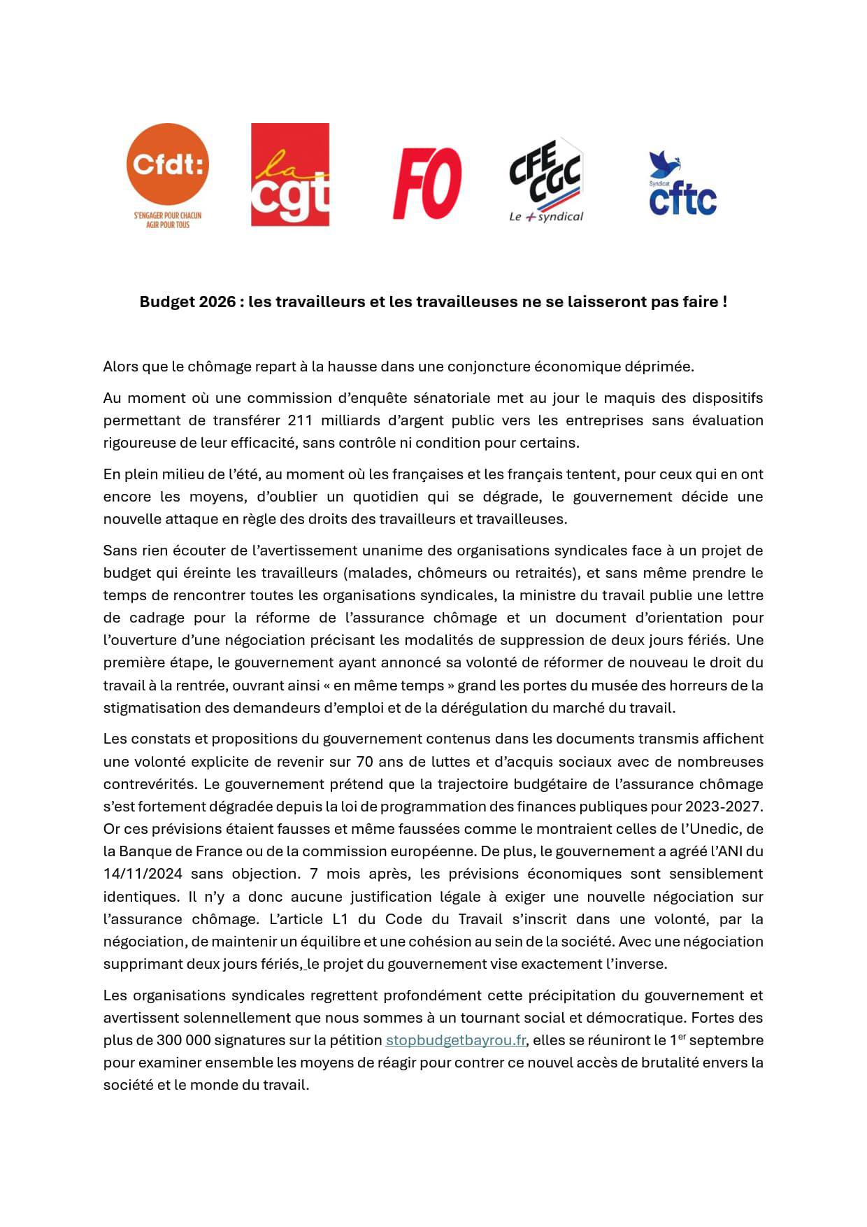 2025 08 12 - [Budget 2026] Les travailleurs et les travailleuses ne se laisseront pas faire !