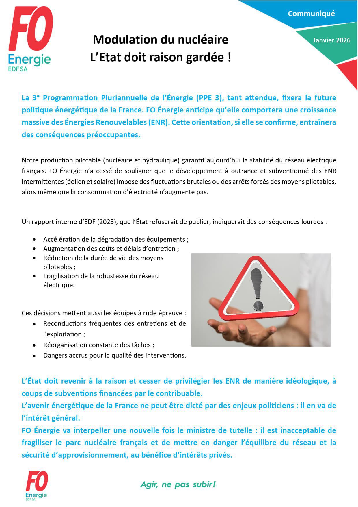 [EDF SA] Modulation du nucléaire - L’État doit raison gardée !