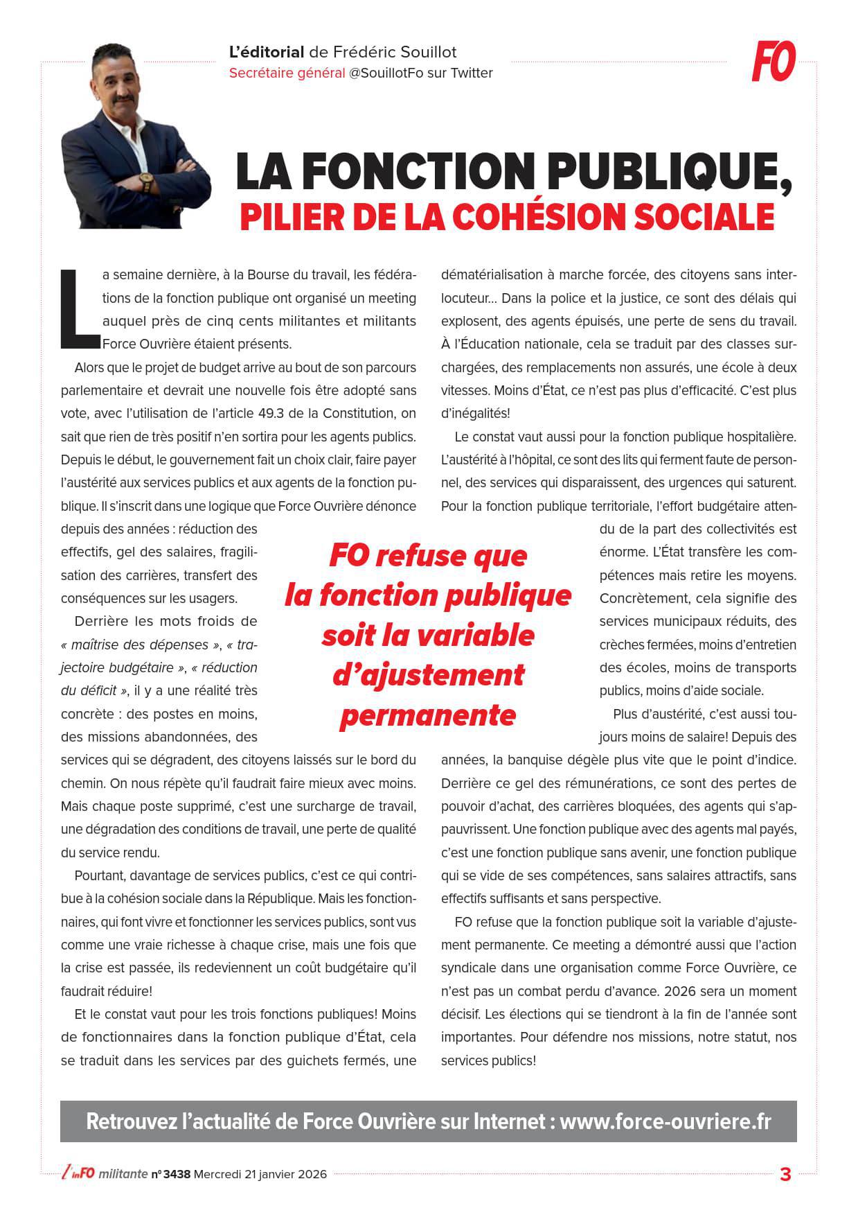 2026 01 21 - L’édito de Frédéric Souillot – La fonction publique, pilier de la cohésion sociale