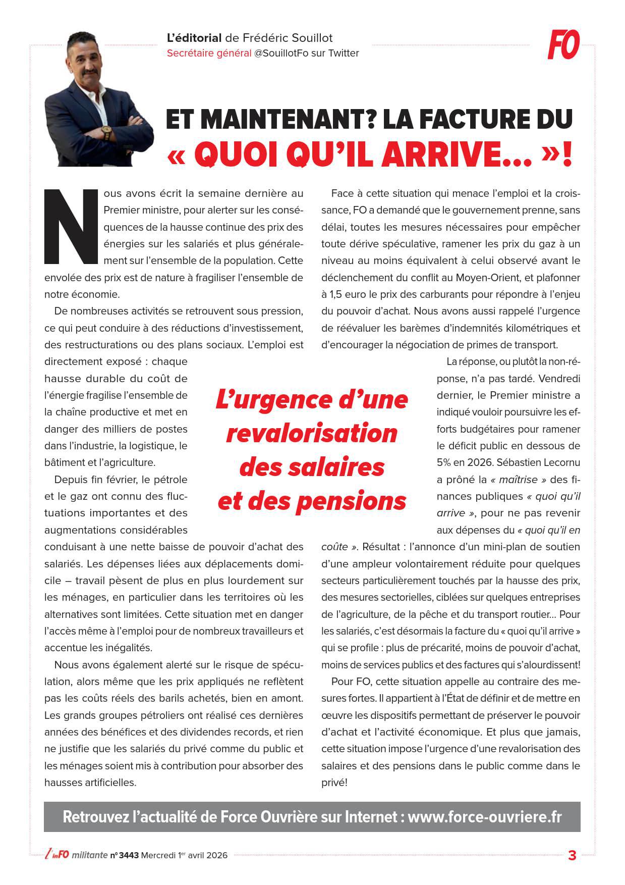 2026 04 01 - L’édito de Frédéric Souillot – Et maintenant La facture du « quoi qu’il arrive… » !