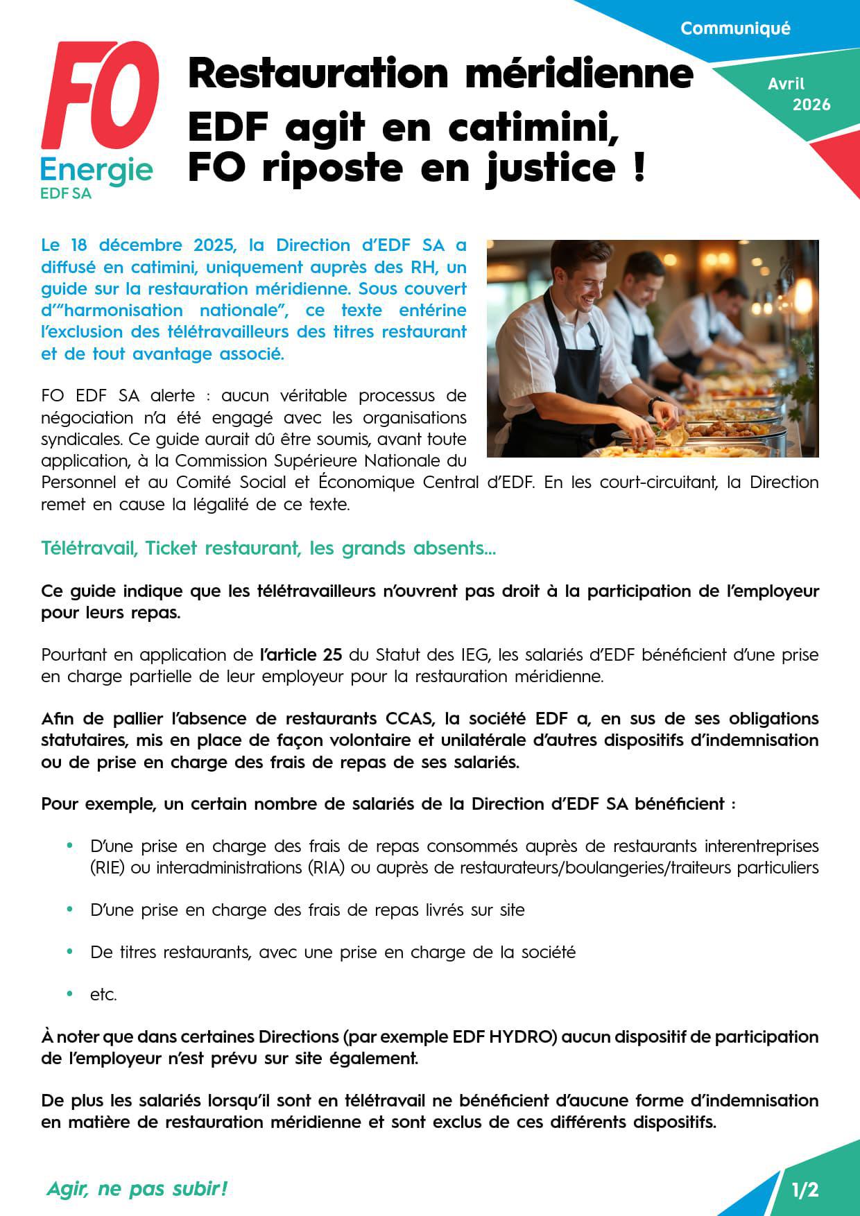 2026 04 17 - [EDF SA] Restauration méridienne – EDF agit en catimini, FO riposte en justice !
